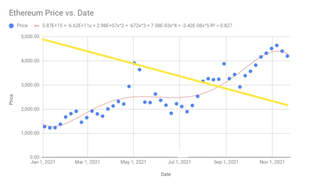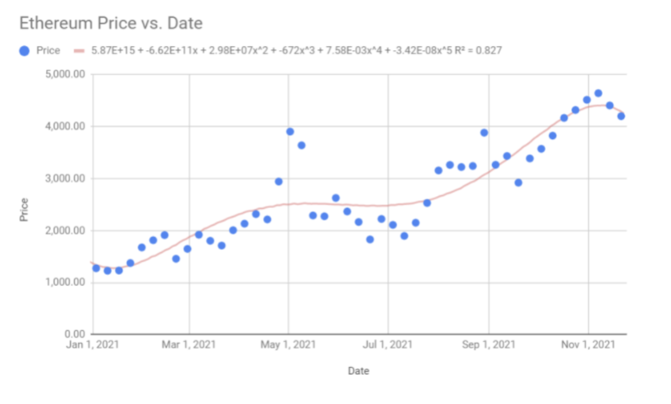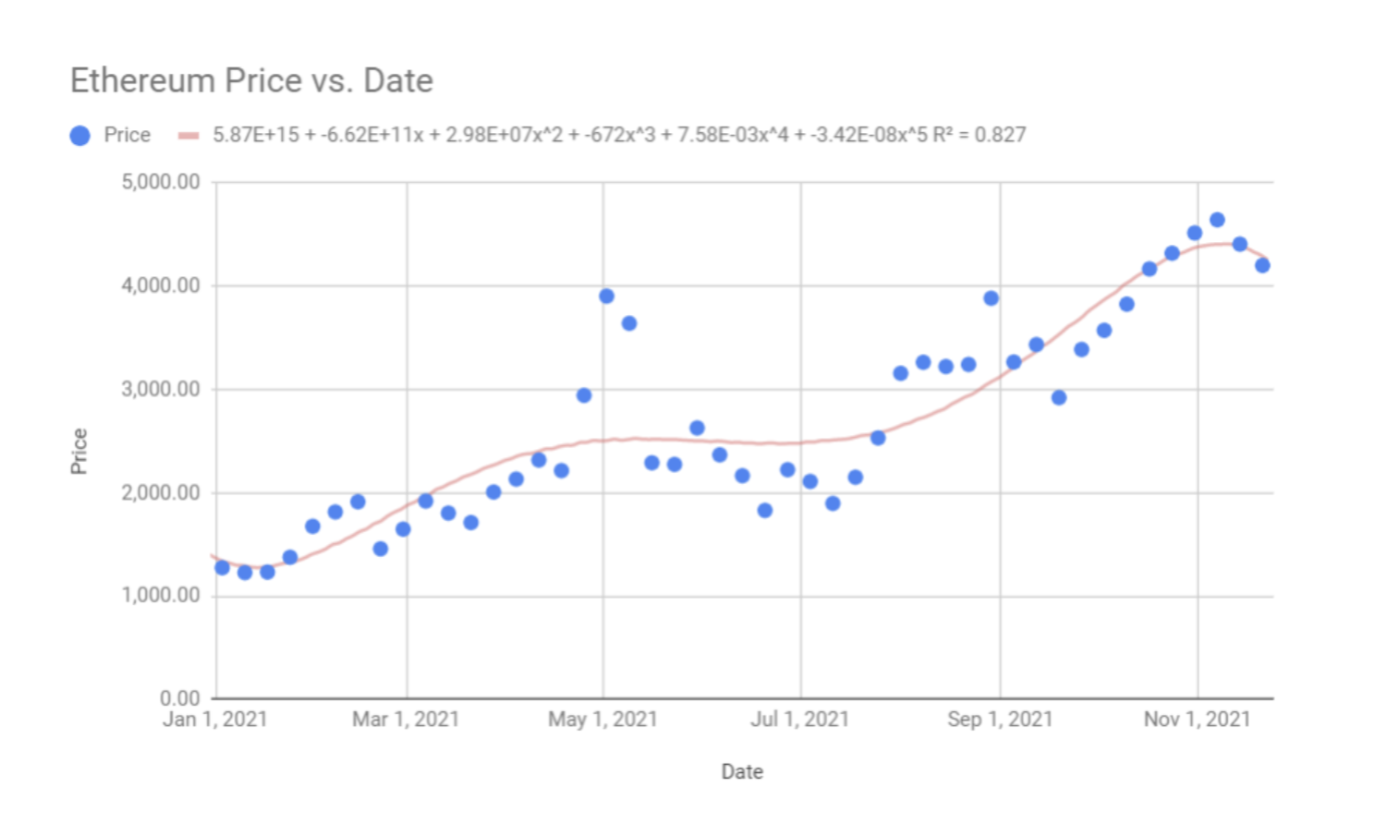 REGRESSION ANALYSIS & THE CURVE OF BEST FIT FOR ETHEREUM PRICE: