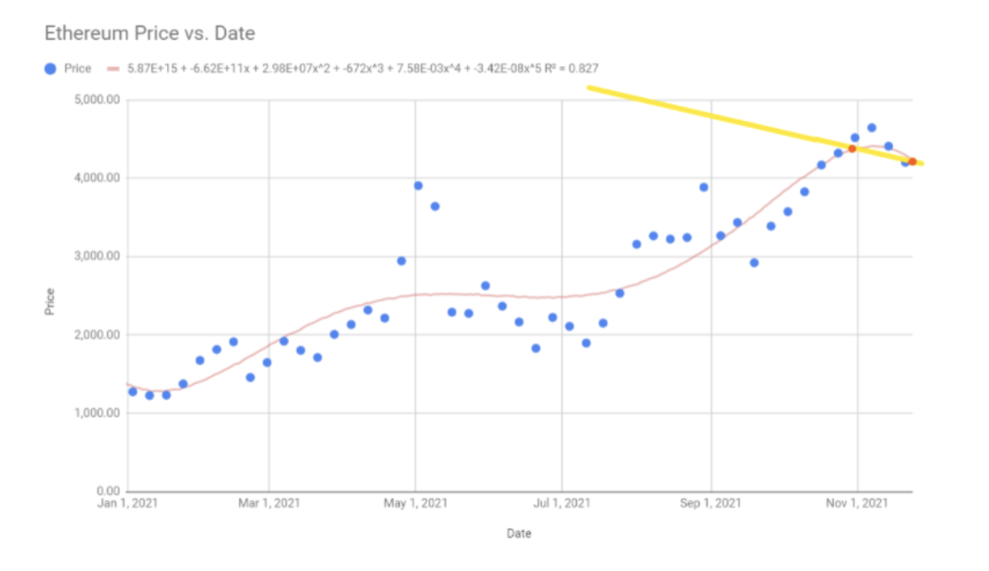 REGRESSION ANALYSIS & THE CURVE OF BEST FIT FOR ETHEREUM PRICE: