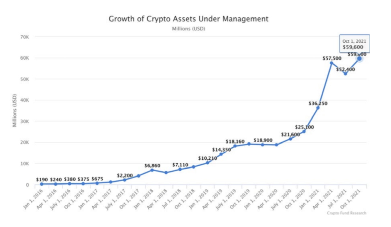 There are several factors that urged the sudden demand for these decentralized solutions, but one of the largest elements came from the collapse of institutional trust. As shown in the diagram above Edelman presents, Business institutes as the most competent and ethical over the other three NGOs, Media and the government. In contrast, the Government and media have been seen as the most incompetent and unethical drive the American population towards the world of cryptocurrencies. Since the U.S. is one of the most influential and biggest globally, it has seen tremendous effects on the global adoption of the technology. Provoking institutional capital to flood into the space, making it move even faster. As shown below in the diagram Crypto dedicated funds have recently seen record capital raises and the sudden appreciation of the fund more firm and group rake their money into it, thereby creating a snowball effect in the ecosystem.